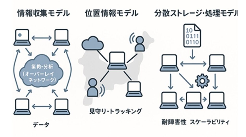 ・自律分散P2Pネットワークを活用し、分散ストレージ+分散処理を組み合わせた通信網を構築